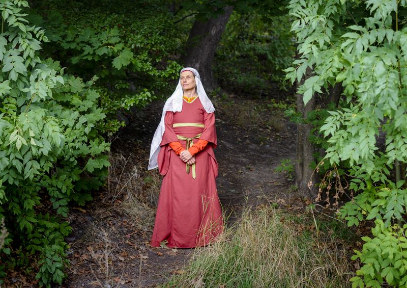 Lyssna till Medeltidsmuseets sömmerska Åsa Dahlstedt som berättar om en av dräkterna.